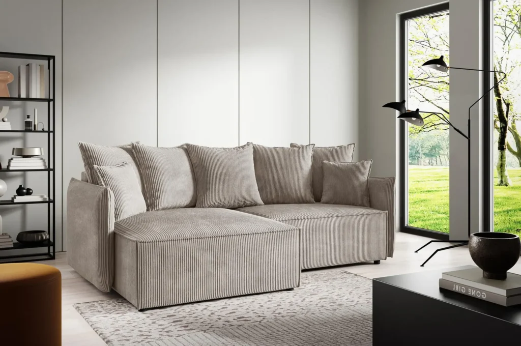 Finally, the Abriamo Mini Corner Sofa Bed can be customised to suit your home perfectly. You can choose from a wide selection of fabrics and colours, allowing you to create a personalised piece. Consequently, your sofa will not only match your interior but also reflect your individual style. Therefore, it becomes more than furniture—it becomes a unique part of your living space.