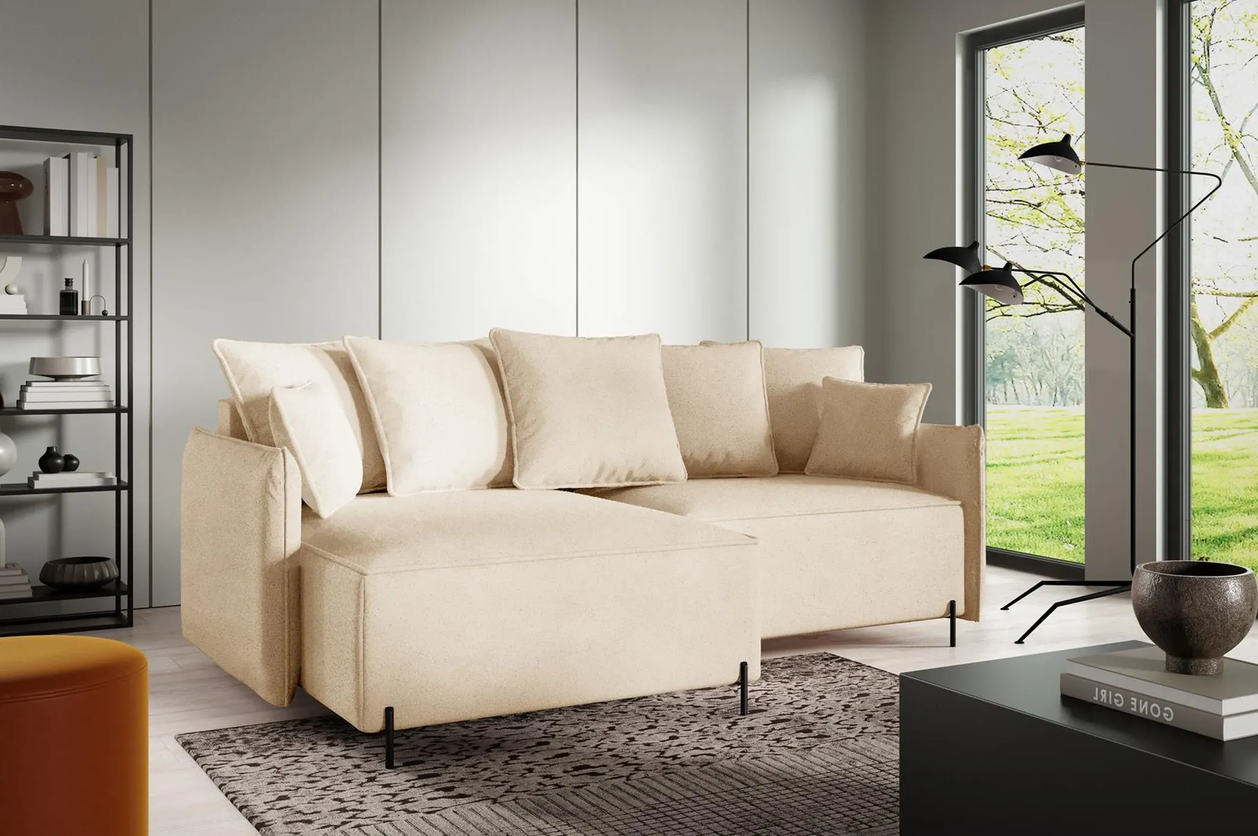 Crafted with foam and corrugated springs, the Bali Corner Sofa Bed delivers long-lasting comfort and support. Its fully upholstered, freestanding design allows you to place it anywhere in a room. The thin armrests maximize seating space, making it ideal for families or homes that host guests regularly.