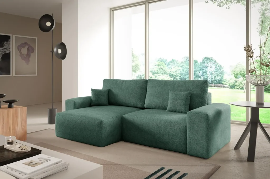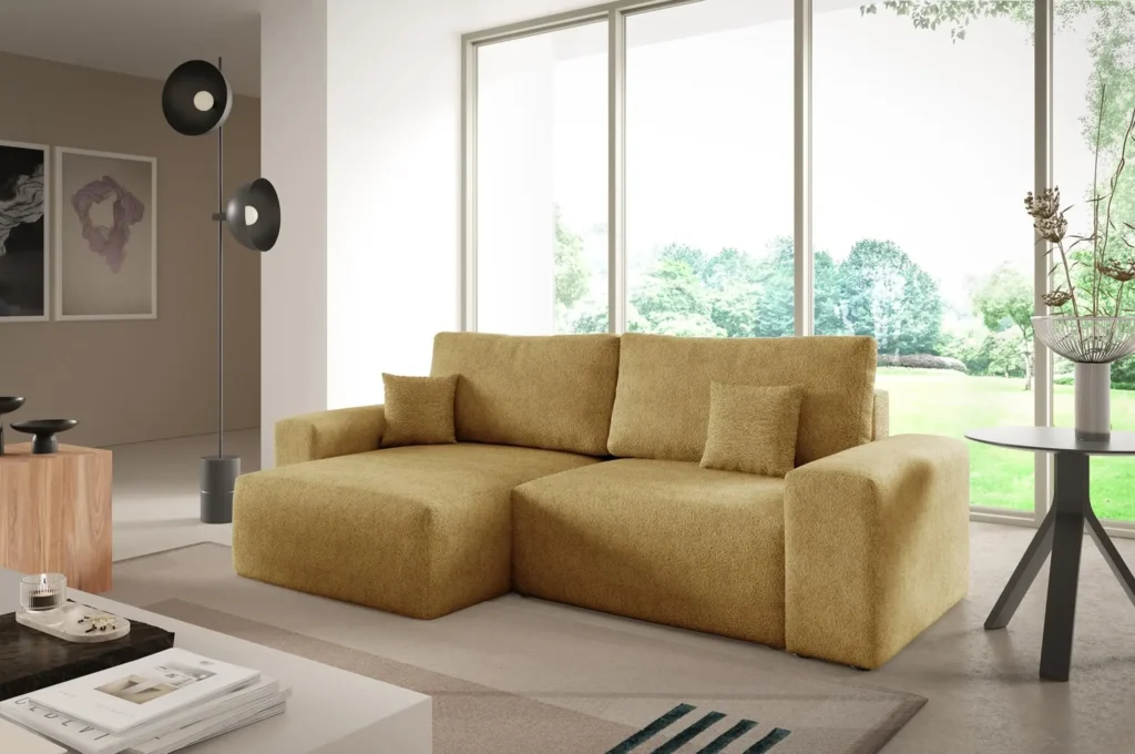 The Centaur Corner Sofa Bed combines sleek modern design with versatile functionality. Its wide armrests and low profile give a bold yet elegant appearance. Moreover, the sofa sits flush to the floor, creating a seamless, contemporary look while preventing items from slipping underneath—ideal for busy households.