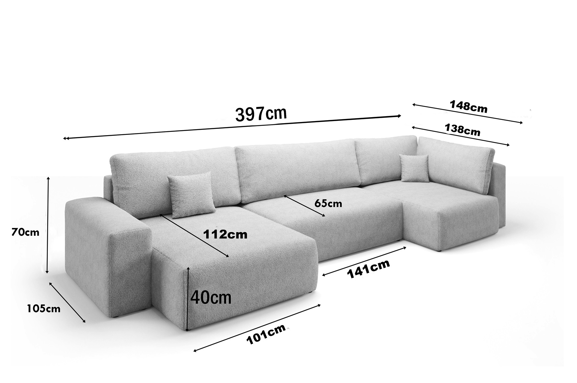 The Centaur Extended Back U Shaped Sofa Bed features a fully upholstered, freestanding design, so you can place it anywhere in your room. Its sturdy structure ensures durability, while the wide armrests add extra comfort. Consequently, this sofa combines everyday practicality with a stylish, modern appearance.