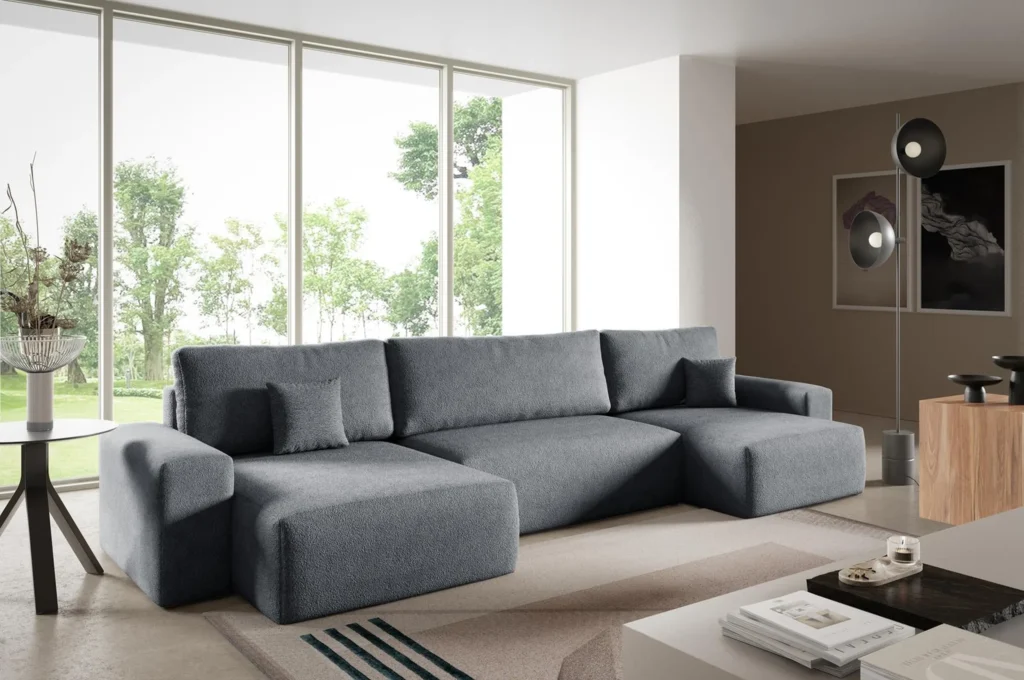 The Centaur U Shaped Sofa Bed features a sturdy, fully upholstered frame that allows you to place it anywhere in your room. Its durable construction ensures long-lasting support, while the wide armrests enhance both comfort and style. Consequently, it combines functionality with modern elegance.