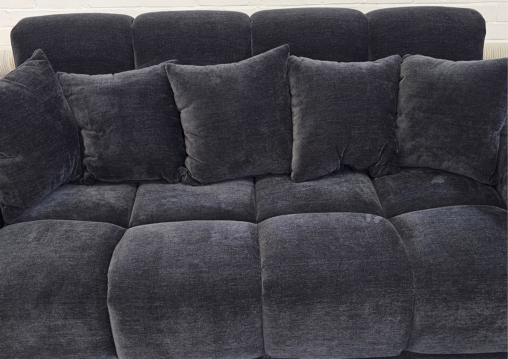 The Jacob 3 Seater Sofa is upholstered in Aston 17 Antracite, a luxurious velour fabric with a soft, plush texture and a subtle, sophisticated sheen. Made from 95% polyester and 5% nylon, this fabric offers excellent durability and resistance to everyday wear, helping the sofa look its best for longer.