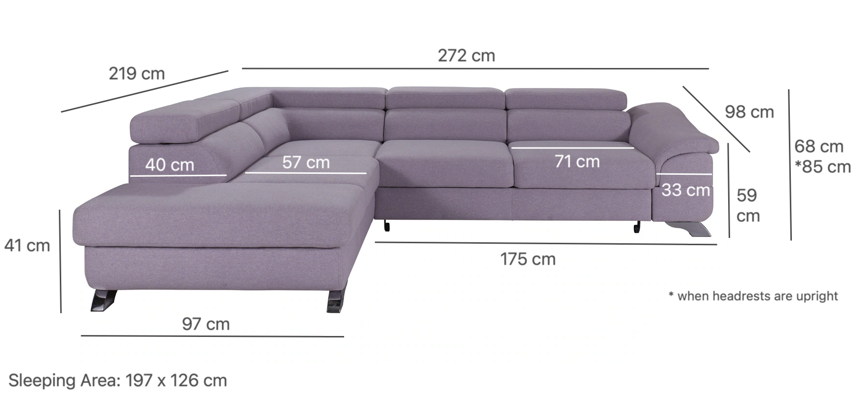 A well designed, aesthetically pleasing modern piece of furniture is how to best describe our Lagos corner sofa bed. This large piece gives off a sophisticated look with its clean lines are sure to draw the eyes of everyone in the room. The adjustable headrests that can be tucked away when not in use, the high quality stitching, copious amounts of under-seat storage and the ability to turn it into a full sized bed make this an easy choice for anyone looking for their perfect new sofa to grace their home with style and functionality.