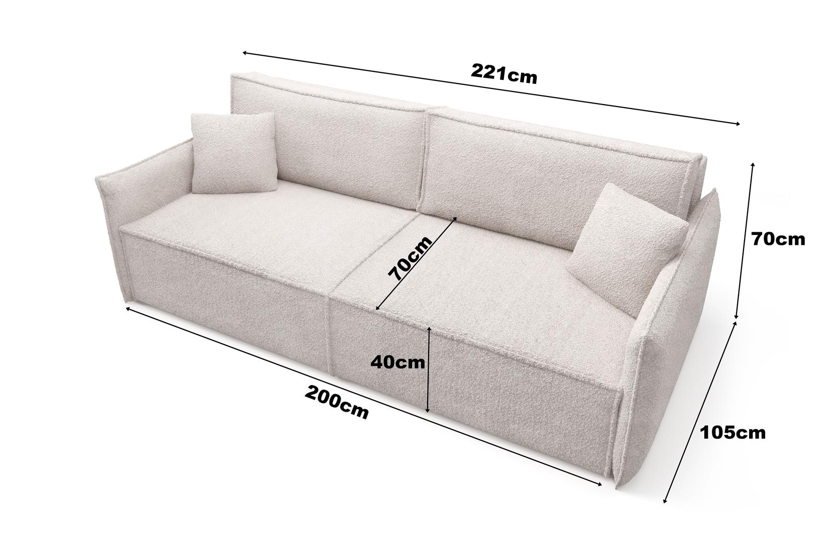 This sofa comes with two large back cushions and two scatter cushions that deliver both comfort and support. In addition, the DL mechanism lets you convert the sofa into a bed quickly: remove the back cushions, pull out the seat section, and fold down the backrest to create a flat sleeping surface. The spacious underseat storage holds blankets, bedding, or other essentials, keeping your living space neat. The Lamb 3 Seater Sofa Bed works equally well for everyday use and for hosting overnight guests.