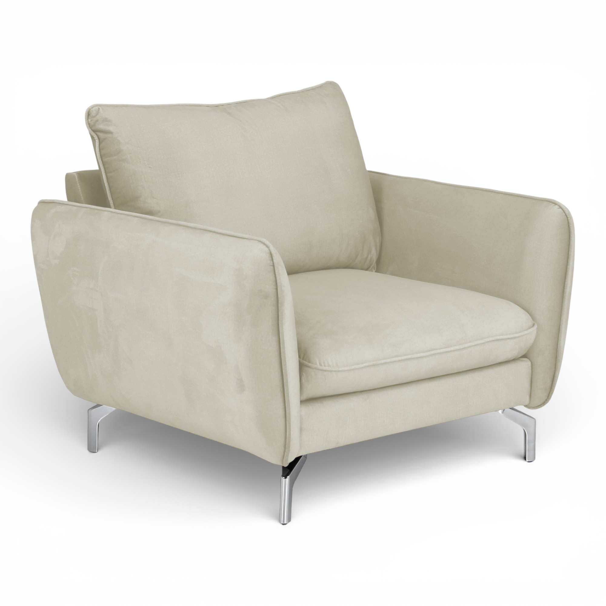 One large back cushion offers excellent support while maintaining a relaxed yet structured look. The chair sits on sleek metal legs, which complement its modern design and provide dependable stability. Each detail combines durability with comfort, making it suitable for daily living.