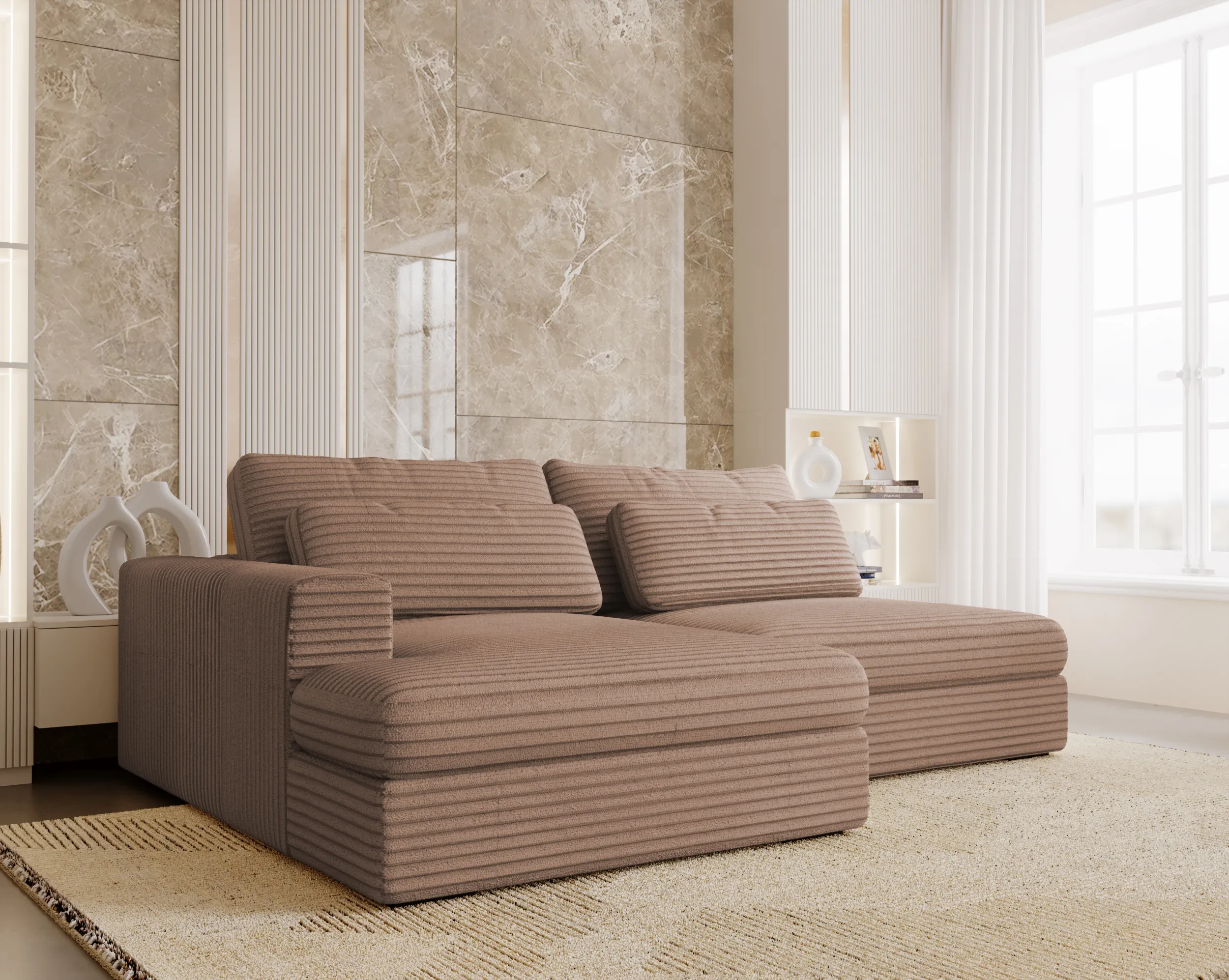The Leida Corner Sofa Bed brings together modern design and everyday practicality. Its compact L-shaped form fits effortlessly into both small and larger rooms. Wrapped in soft, textured corduroy, it adds warmth, style, and a cosy feel to any interior.