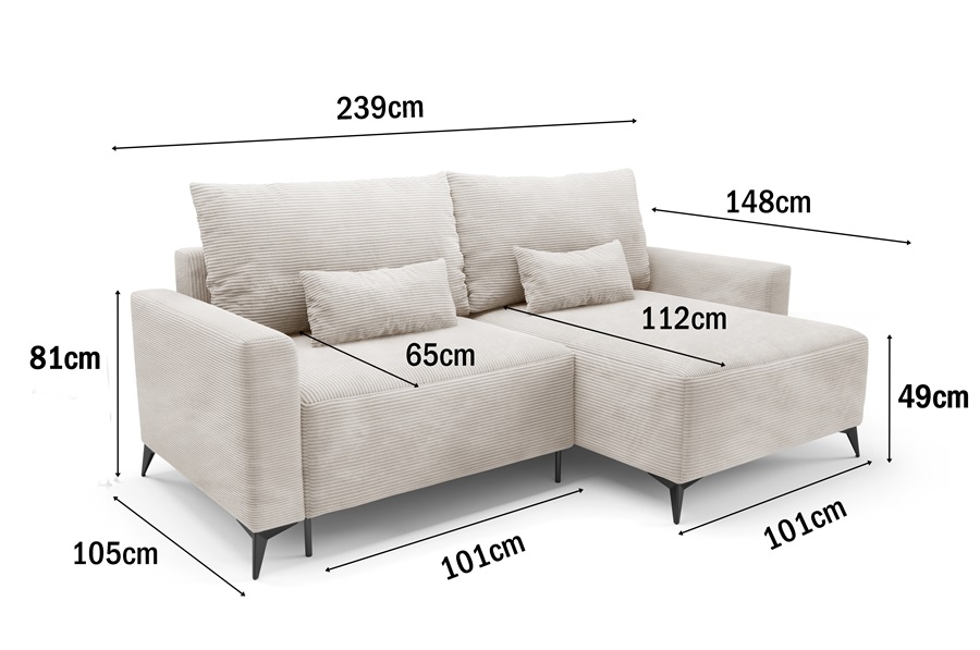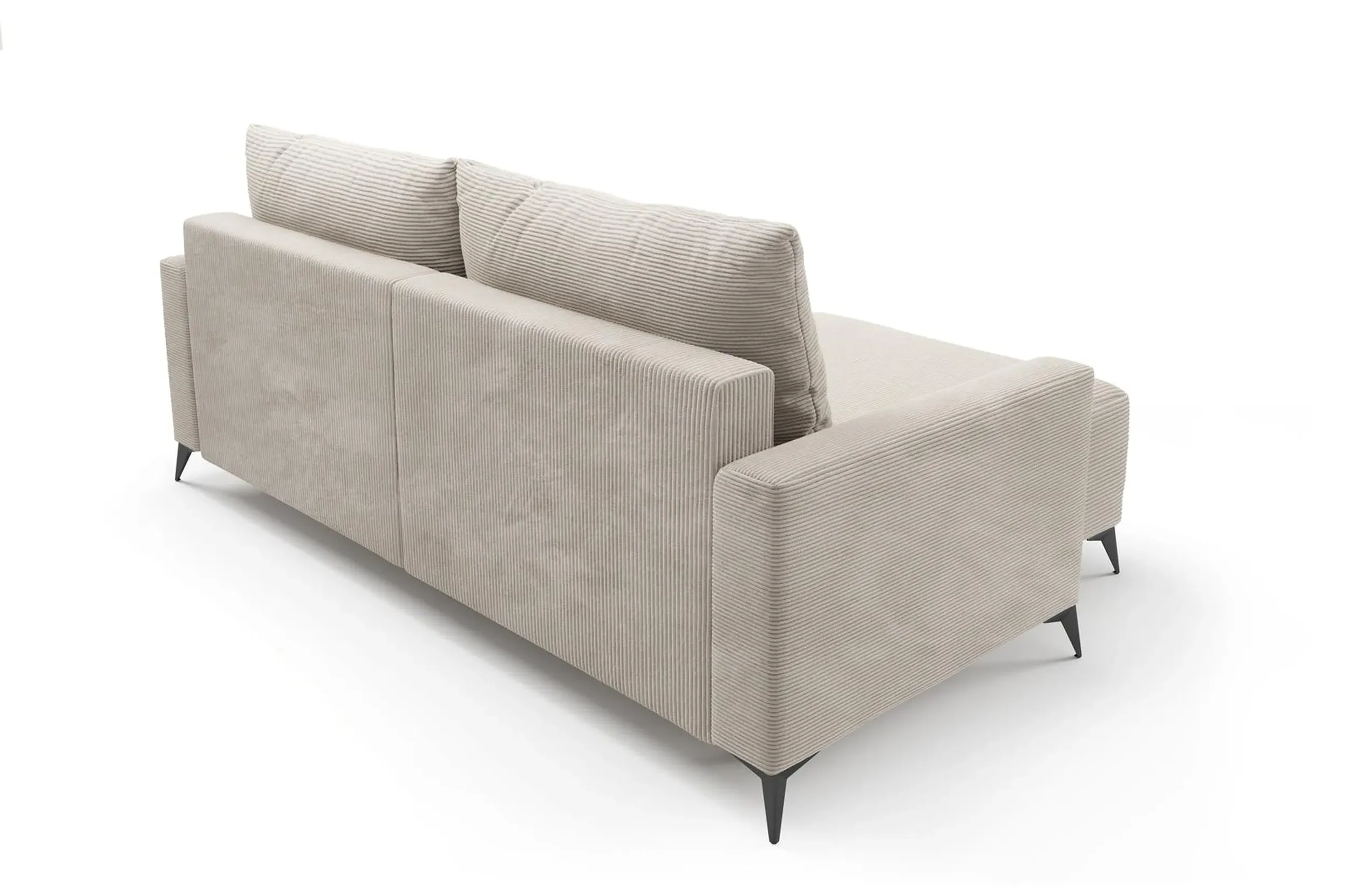 The Loft Corner Sofa Bed combines a compact design with modern style. Medium-width armrests and clean lines give the sofa a bold, contemporary appearance. Moreover, slim metal legs raise the sofa off the floor, creating a light, airy feel while maintaining a sleek silhouette.
