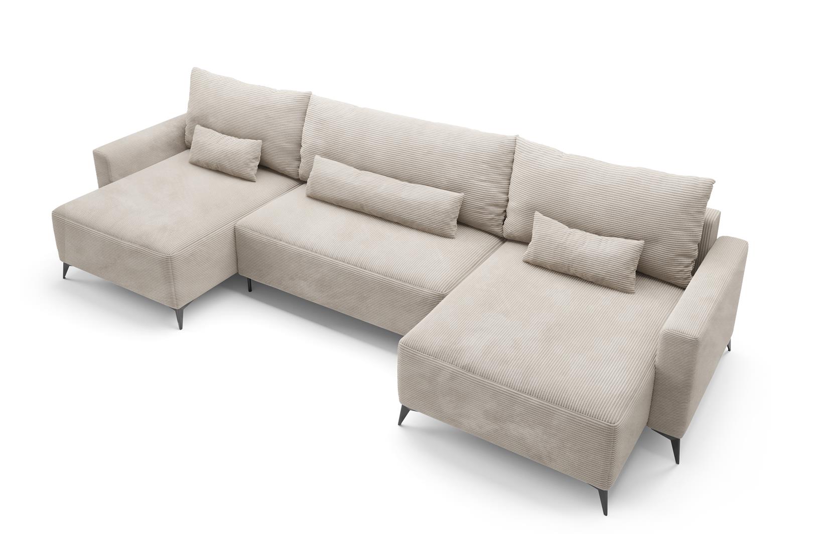 The Loft U Shaped Sofa Bed combines generous seating with modern design. Medium-width armrests and clean lines create a bold, contemporary look. Moreover, slim metal legs lift the sofa off the floor, adding a light, airy feel to your living space.