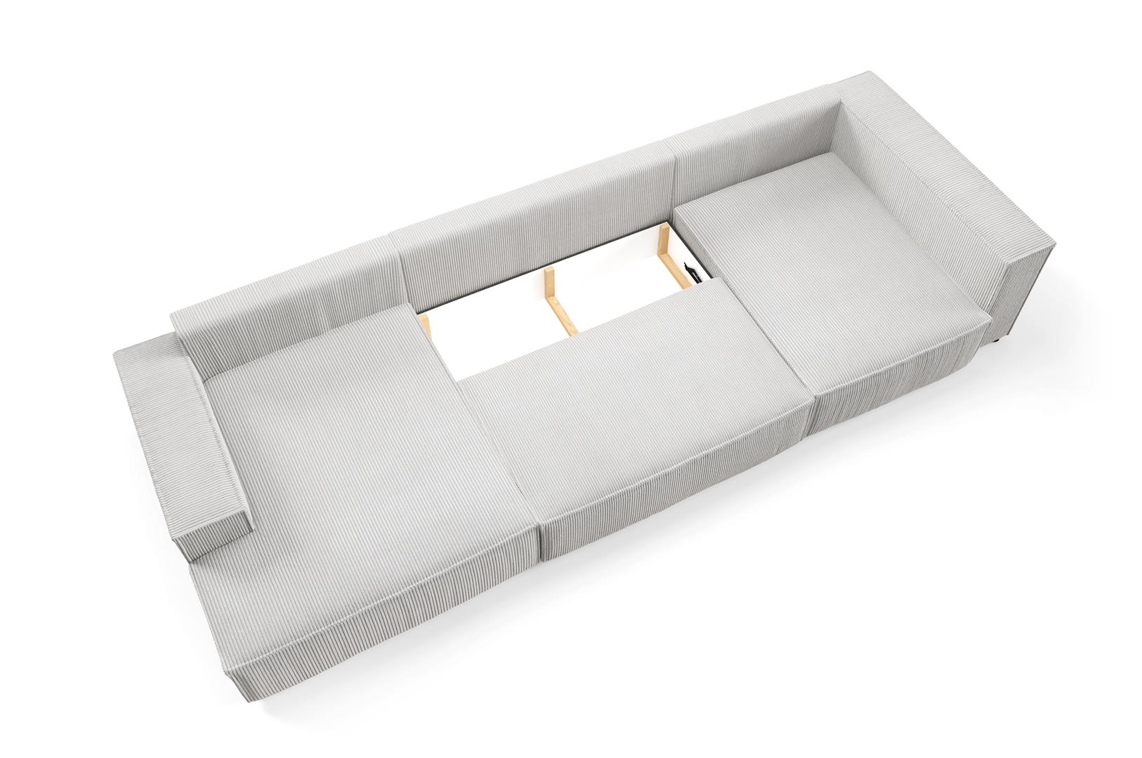 This sofa comes with four large back cushions and two scatter cushions, providing excellent support for lounging. In addition, the DL mechanism allows quick conversion into a bed. Remove the back cushions, slide out the seat section, and fold down the backrest to form a flat sleeping surface. Furthermore, the underseat storage offers practical space for bedding, blankets, or essentials. The extra-wide chaise section makes it perfect for relaxed lounging or family movie days. As a result, the Max Extended Back U Shaped Sofa Bed is ideal for busy households and overnight guests.