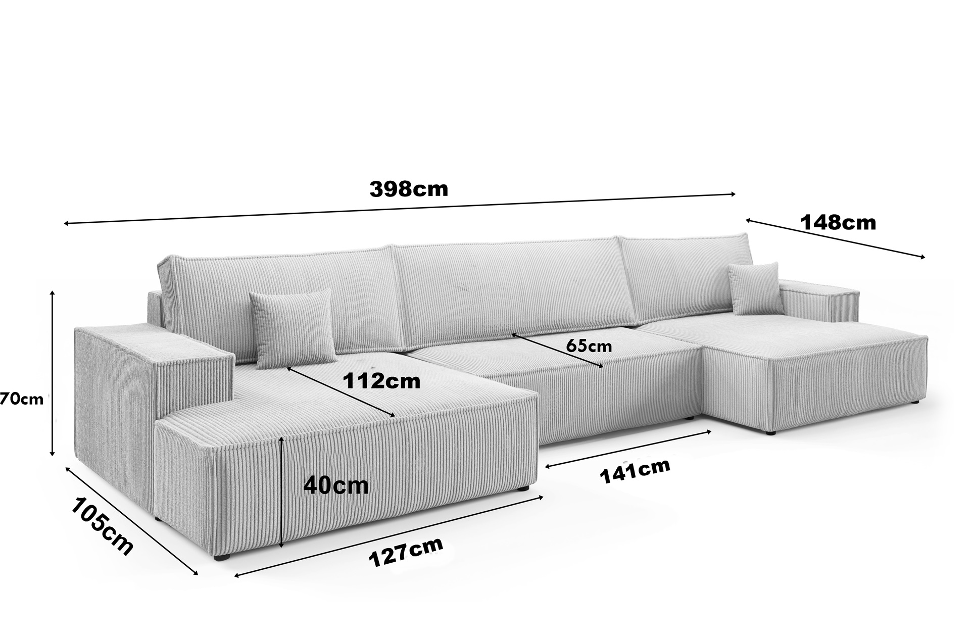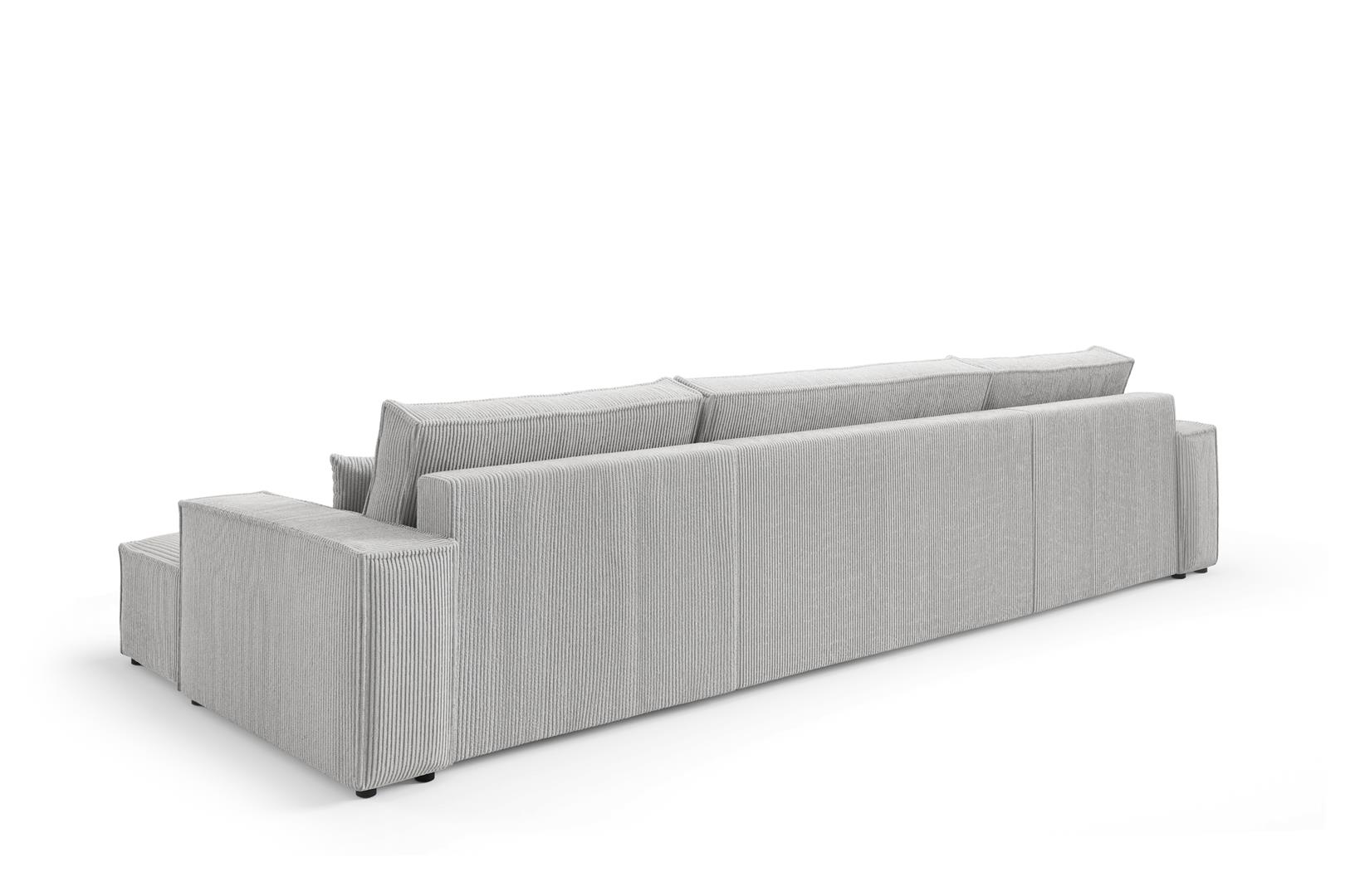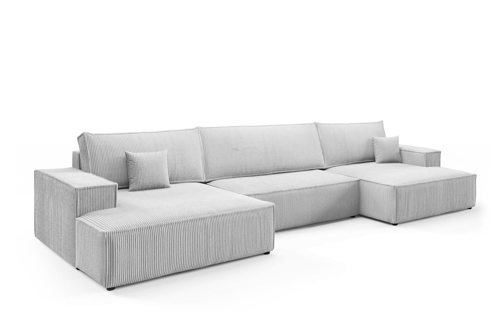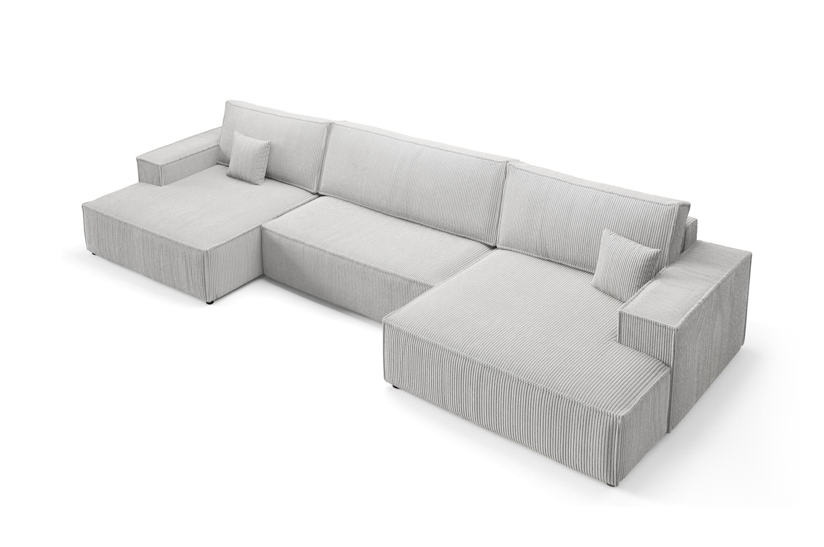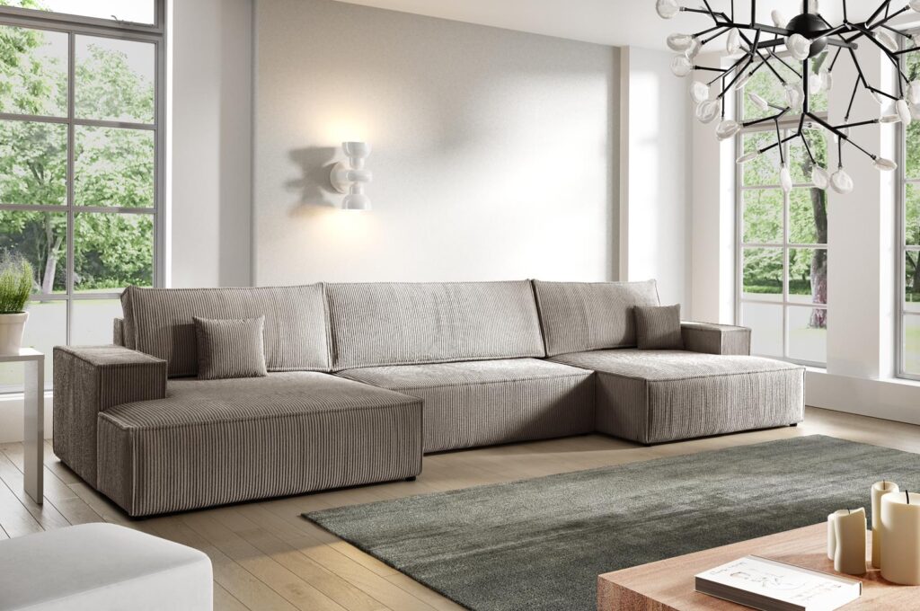This spacious sofa includes three large back cushions and two scatter cushions, providing excellent support for everyday lounging. In addition, the DL mechanism allows quick conversion into a bed. Remove the back cushions, slide out the seat section, and fold down the backrest to form a flat sleeping surface. Furthermore, the underseat storage offers practical space for bedding, blankets, or essentials. The extra-wide chaise section ensures maximum comfort, making it perfect for relaxing with family or friends. As a result, the Max U Shaped Sofa Bed is ideal for busy households and overnight guests.