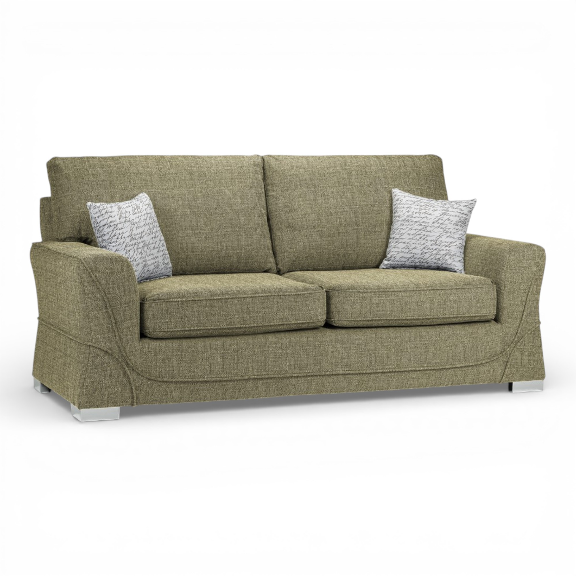 This generous three seater offers plenty of space for relaxing with family or entertaining guests. Standard armrests with flat tops provide both comfort and practicality, creating a supportive place to rest your arms or position cushions. Its balanced proportions make it suitable for larger lounges while still maintaining a neat and structured appearance. Because it is fully upholstered, the sofa looks attractive from every angle and can be positioned freely within your room layout.