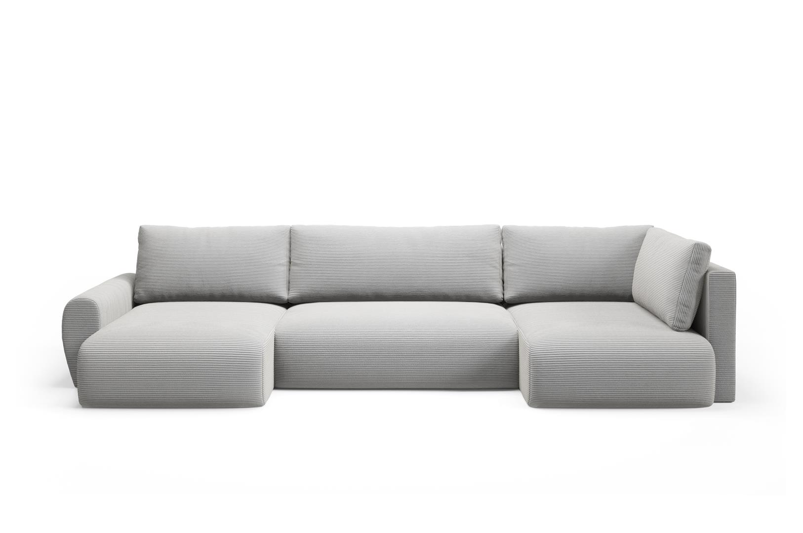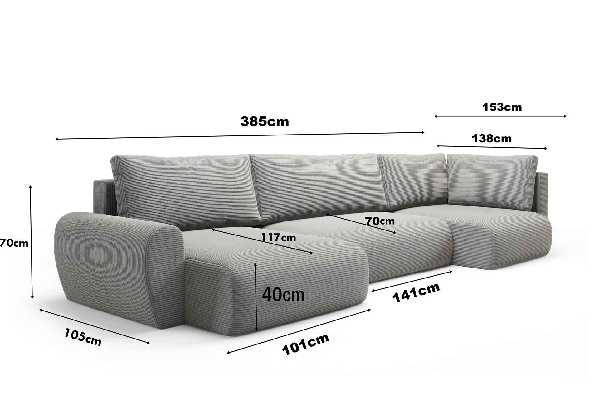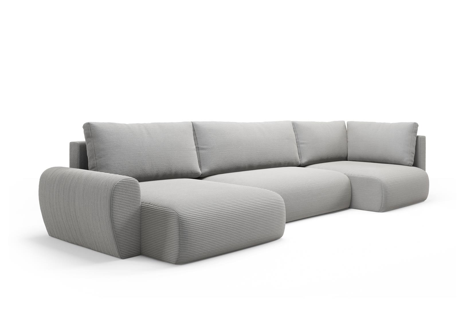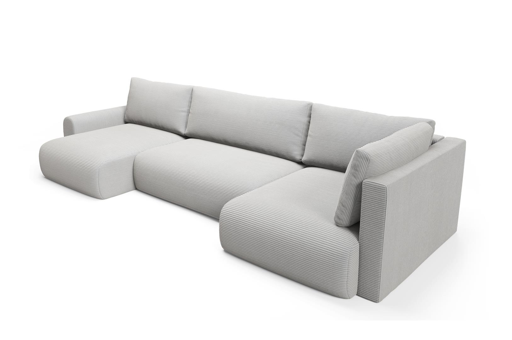 The Poss Extended Back U Shaped Sofa Bed combines large-scale comfort with contemporary design. Its extended backrest wraps around the chaise section, giving you more placement options in any room. One side includes a traditional armrest, while the other side features the extended back, adding extra support and versatility. Moreover, the curved armrest enhances the look with a modern touch. The sofa also sits flush to the floor, creating a sleek, seamless appearance while preventing small items from slipping underneath.