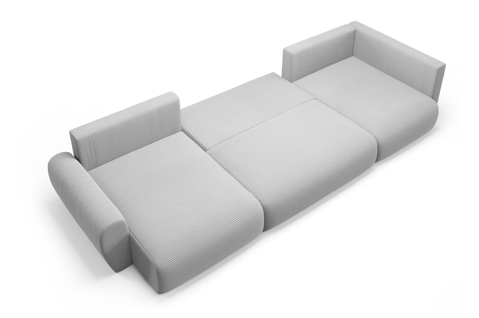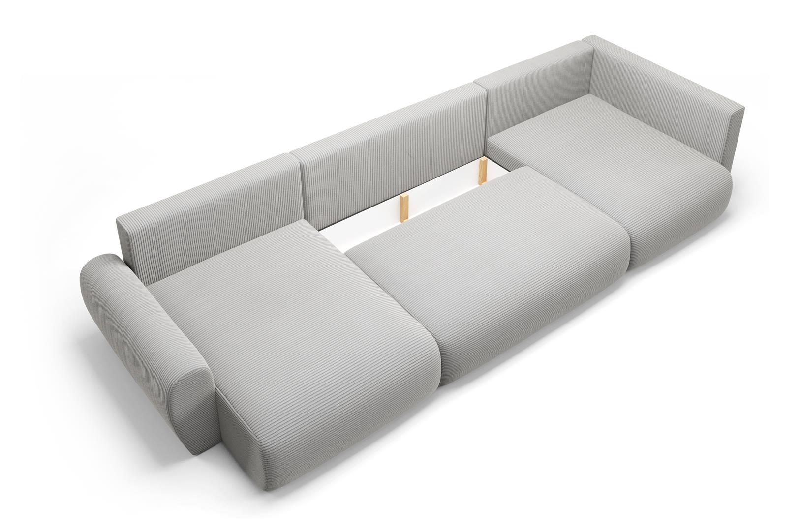 This sofa includes four large back cushions, offering excellent support for lounging and relaxing. In addition, the DL mechanism allows you to convert the sofa into a bed quickly and easily. Remove the back cushions, pull out the seat section, and fold down the backrest to create a flat sleeping area. Furthermore, the underseat storage provides a practical solution for blankets, bedding, or everyday essentials. As a result, the Poss Extended Back U Shaped Sofa Bed works perfectly for family living, casual lounging, and hosting overnight guests.