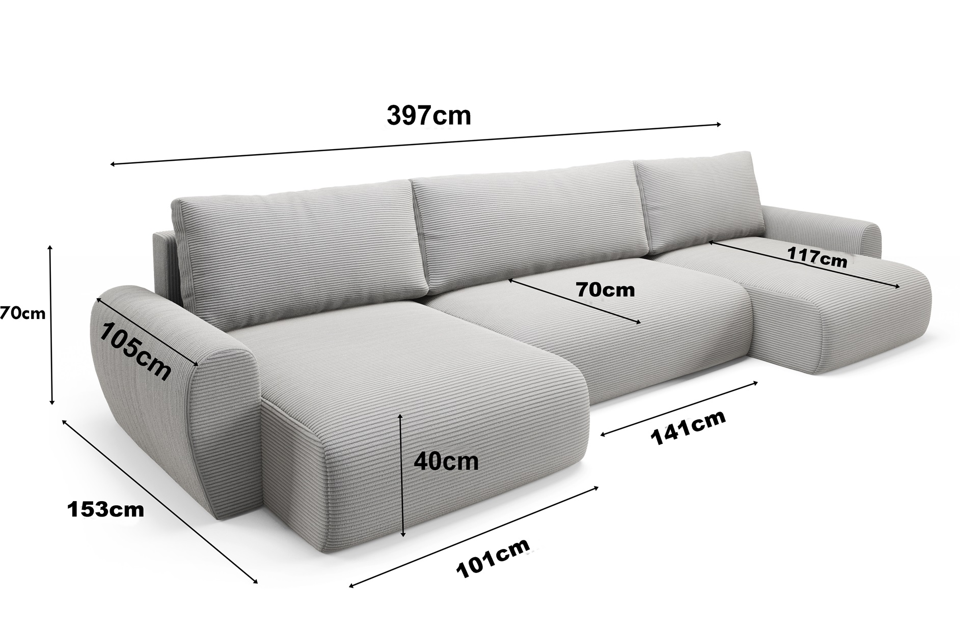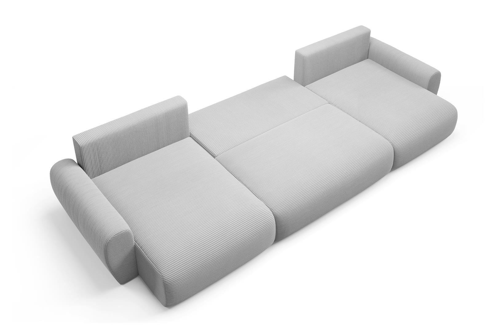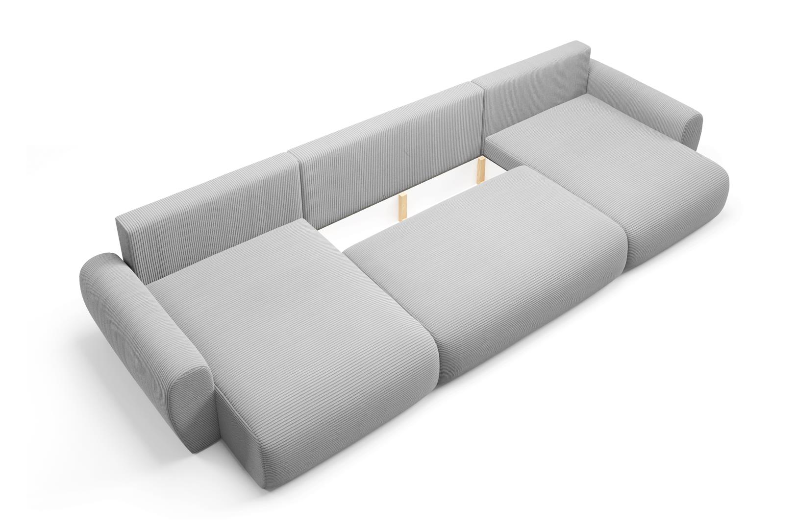 This sofa includes three large back cushions, providing excellent support for relaxing and lounging. In addition, the DL mechanism lets you transform the sofa into a bed in just a few steps. Remove the back cushions, pull out the seat section, and fold down the backrest to create a flat sleeping surface. Furthermore, the underseat storage offers a convenient space for bedding, cushions, or blankets. As a result, the Poss U Shaped Sofa Bed works perfectly for family living and hosting guests.
