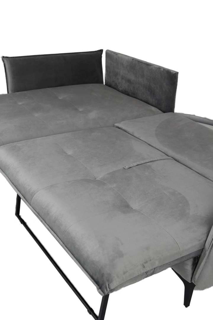 This corner sofa easily transforms into a comfortable bed when needed. Simply pull the seat section forward and the hidden metal legs fold down to provide support. Then fold down the backrest to create a flat sleeping surface. This smooth and simple mechanism allows you to quickly convert the sofa into a convenient guest bed.
