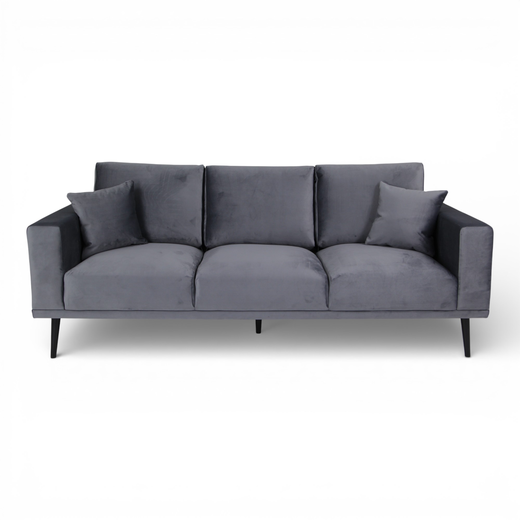 Designed for style and comfort. Built with a solid wood frame and foam fibre filled cushions finished with soft highly durable velvet fabric. A sofa which is made to last at an affordable price!