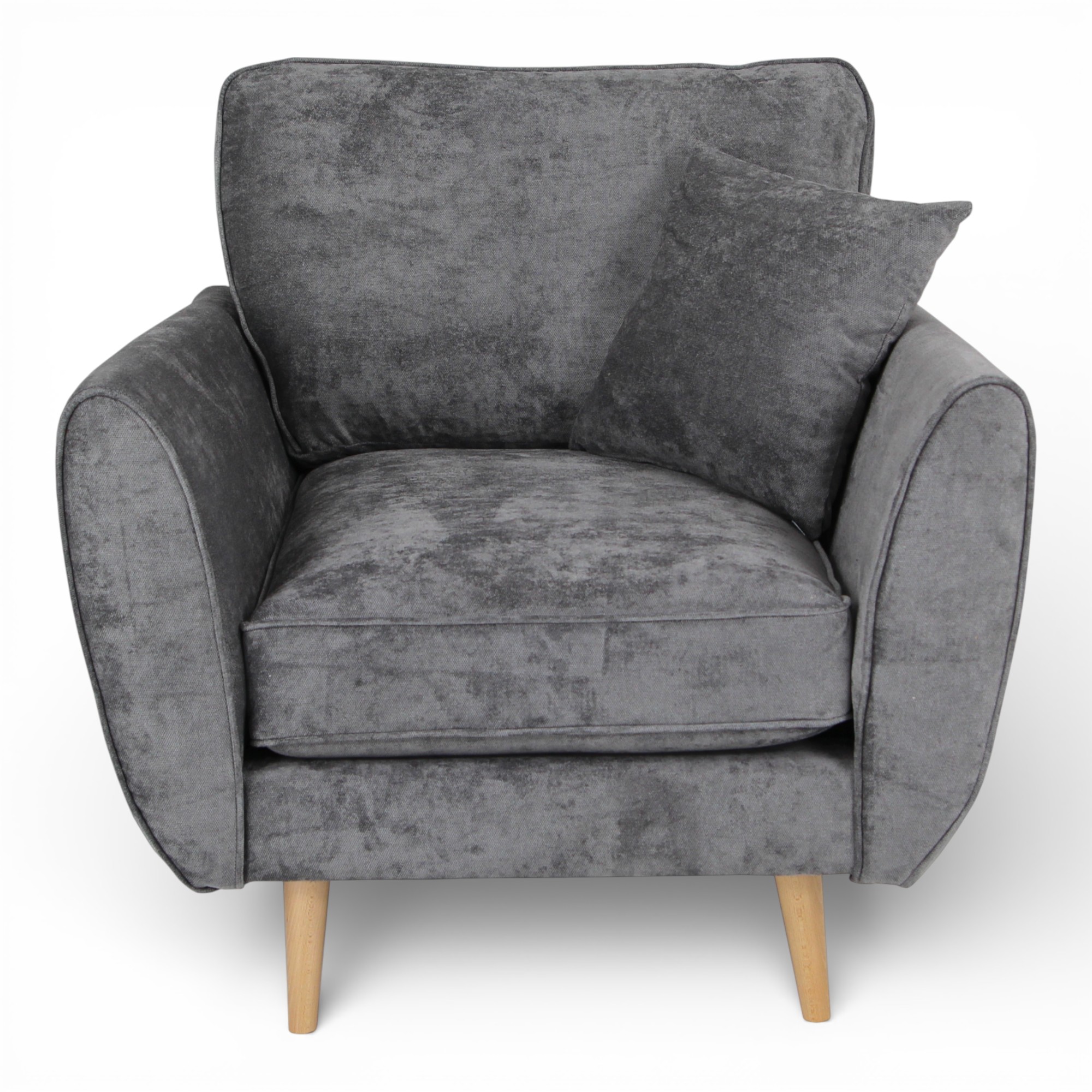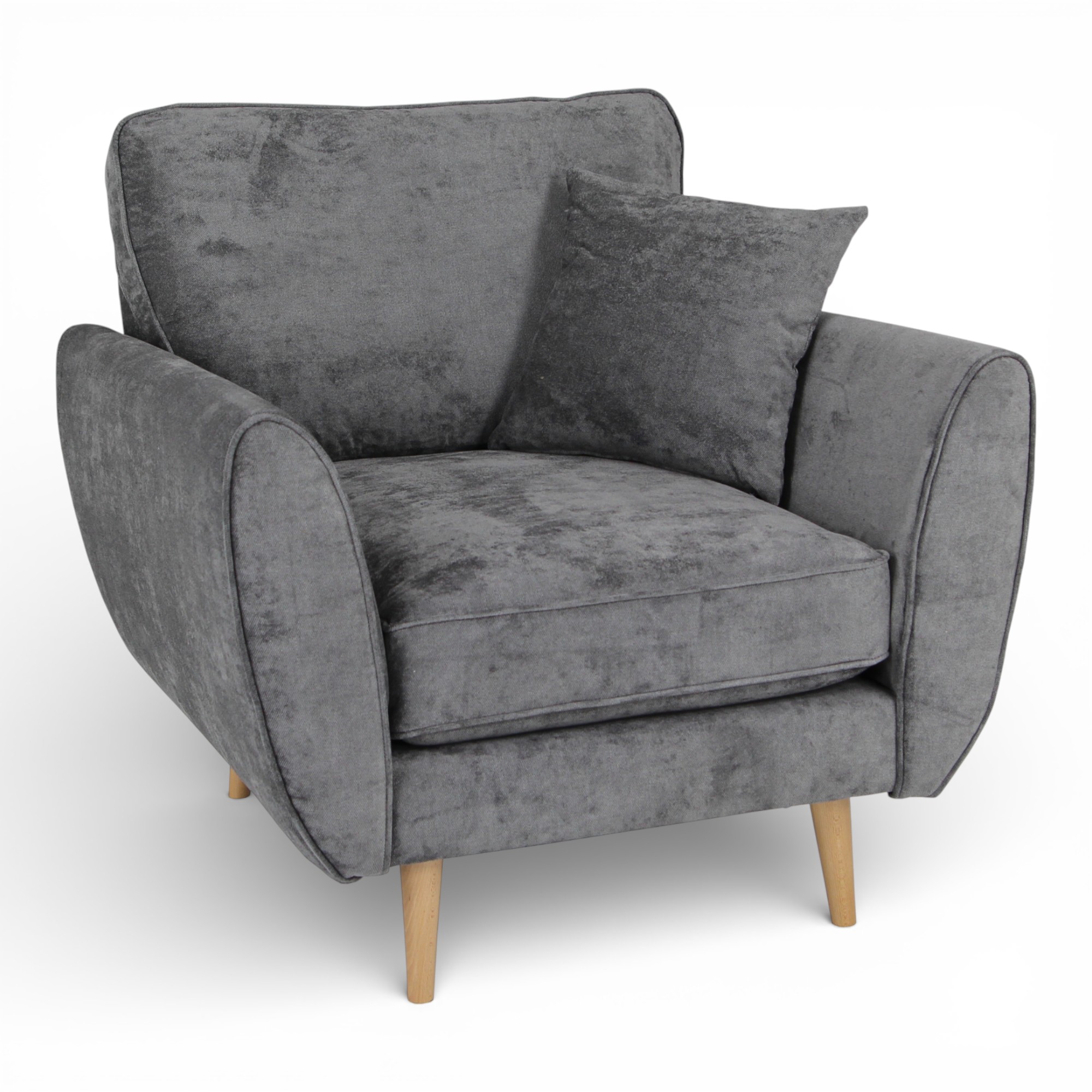 Our Zara armchair combines contemporary design with comfort. Its curvaceous arms and subtle piping trim create a stylish silhouette. This bold accent chair sits elegantly on splayed wooden legs, adding height and character. With loose seat and back cushions, it’s both inviting and easy to clean.